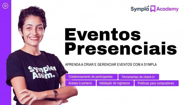 O curso é composto por 23 vídeoaulas rápidas e objetivas, alternando entre conteúdo estratégico e ferramental, incluindo tutoriais guiados da plataforma — versões web e app —, além de diferenças da interface para sistemas operacionais Android e iOS.O Sympla Academy: Eventos Presenciais é composto por 5 pilares de atuação para profissionais de eventos — validação de ingressos, acesso à portaria, credenciamento dos participantes, ferramentas de check-in e políticas para compradores.