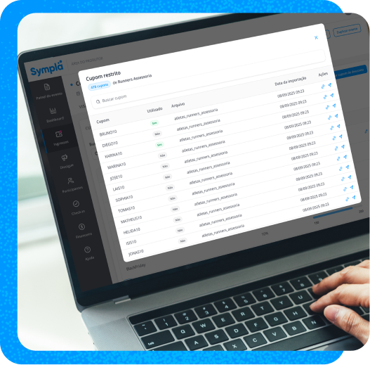 Ofereça cupons de desconto com códigos únicos e intransferíveis para associados, patrocinadores, promoters e listas VIP. Evite vazamentos, proteja sua margem e tenha controle total sobre seus descontos em ingressos.