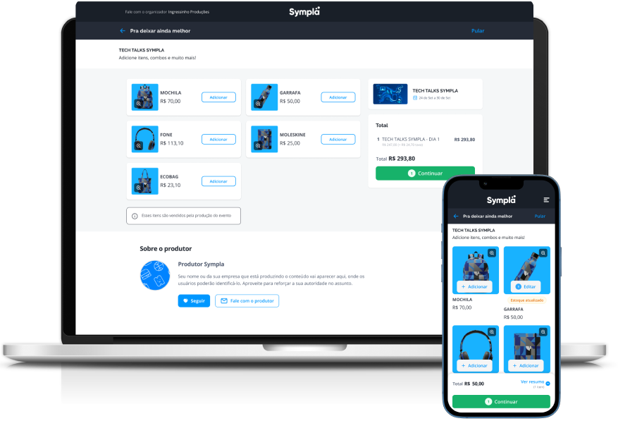 Agora você pode ir além da venda de ingressos, ofereça produtos, serviços e itens adicionais em eventos. Centralize tudo no mesmo lugar, simplifique a gestão e ofereça uma experiência ainda mais completa para o público.