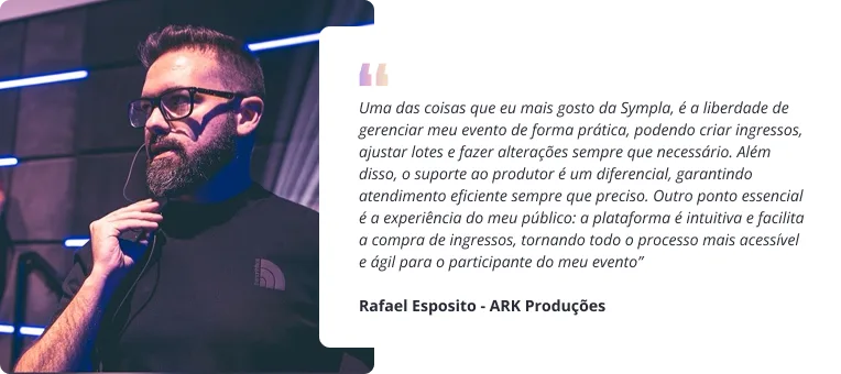 Uma das coisas que eu mais gosto da Sympla, é a liberdade de gerenciar meu evento de forma prática, podendo criar ingressos, ajustar lotes e fazer alterações sempre que necessário. Além disso, o suporte ao produtor é um diferencial, garantindo atendimento eficiente sempre que preciso. Outro ponto essencial é a experiência do meu público: a plataforma é intuitiva e facilita a compra de ingressos, tornando todo o processo mais acessível e ágil para o participante do meu evento”